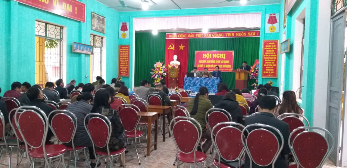 Chiều ngày 27/12/2019 Ban chấp hành Đảng bộ xã Tân Quang tổ chức hội nghị Ban chấp hành Đảng bộ xã lần thứ 51 mở rộng, tổng kết công tác lãnh chỉ đạo năm 2019 và ban hành Nghị quyết lãnh đạo năm 2020. Dự hội nghị có đồng chí Đinh văn Minh, Ủy viên Ban thường vụ huyện ủy, Phó Chủ tịch HĐND huyện Bắc Quang, các đồng chí ủy viên Ban chấp hành Đảng bộ xã, các đồng chí cán bộ, công chức, Trưởng - Phó các đoàn thể, các đồng chí chi ủy các chi bộ trực thuộc Đảng bộ, trưởng thôn 08 thôn trên địa bàn xã.