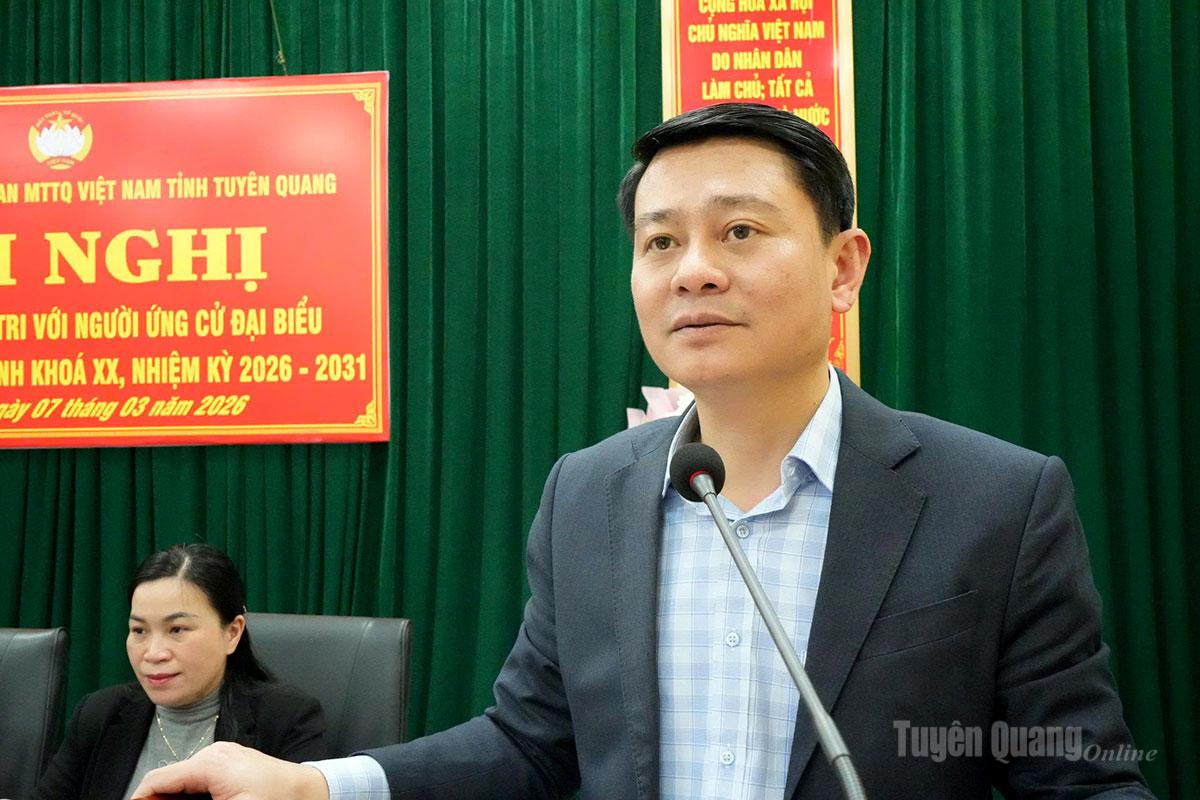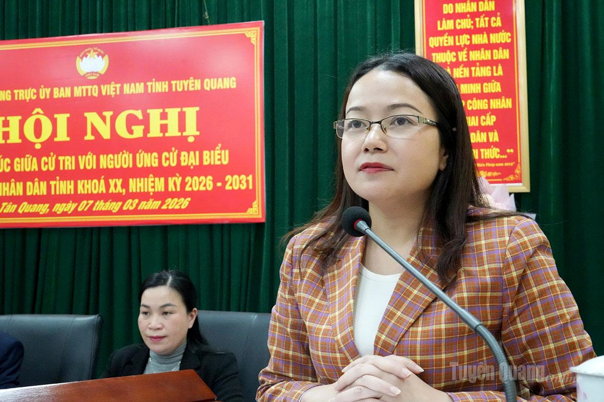 Trình bày dự kiến chương trình hành động nếu được bầu làm đại biểu HĐND tỉnh nhiệm kỳ 2026–2031 trước cử tri xã Tân Quang, các ứng cử viên nêu rõ mục tiêu, nhiệm vụ, giải pháp trọng tâm và cam kết thực hiện trách nhiệm của người đại biểu dân cử nếu được cử tri tín nhiệm bầu làm đại biểu HĐND tỉnh trong nhiệm kỳ tới; đồng thời tích cực học tập, rèn luyện nâng cao trình độ chuyên môn, giữ mối liên hệ chặt chẽ với cử tri, thường xuyên tiếp xúc, lắng nghe tâm tư, nguyện vọng của Nhân dân; kịp thời phản ánh ý kiến cử tri đến cơ quan có thẩm quyền xứng đáng là người đại diện cho ý chí, nguyện vọng của Nhân dân….