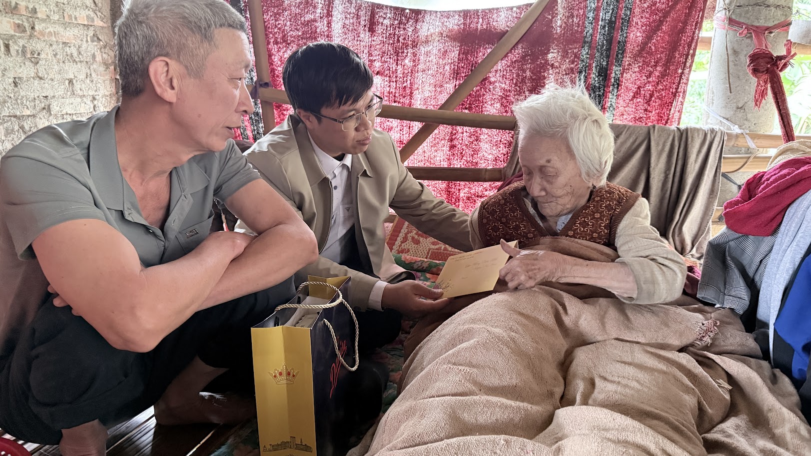 Đồng chí Chủ tịch UBND xã cùng đoàn đã tới thăm, chúc tết các Cụ Đỗ Thị Sách, thôn Tân Tiến, 105 tuổi; Lê Thị Quỳ, thôn Nậm Mu 104 tuổi và cụ Triệu Thị Nụn, thôn Ngần Thượng, 103 tuổi.