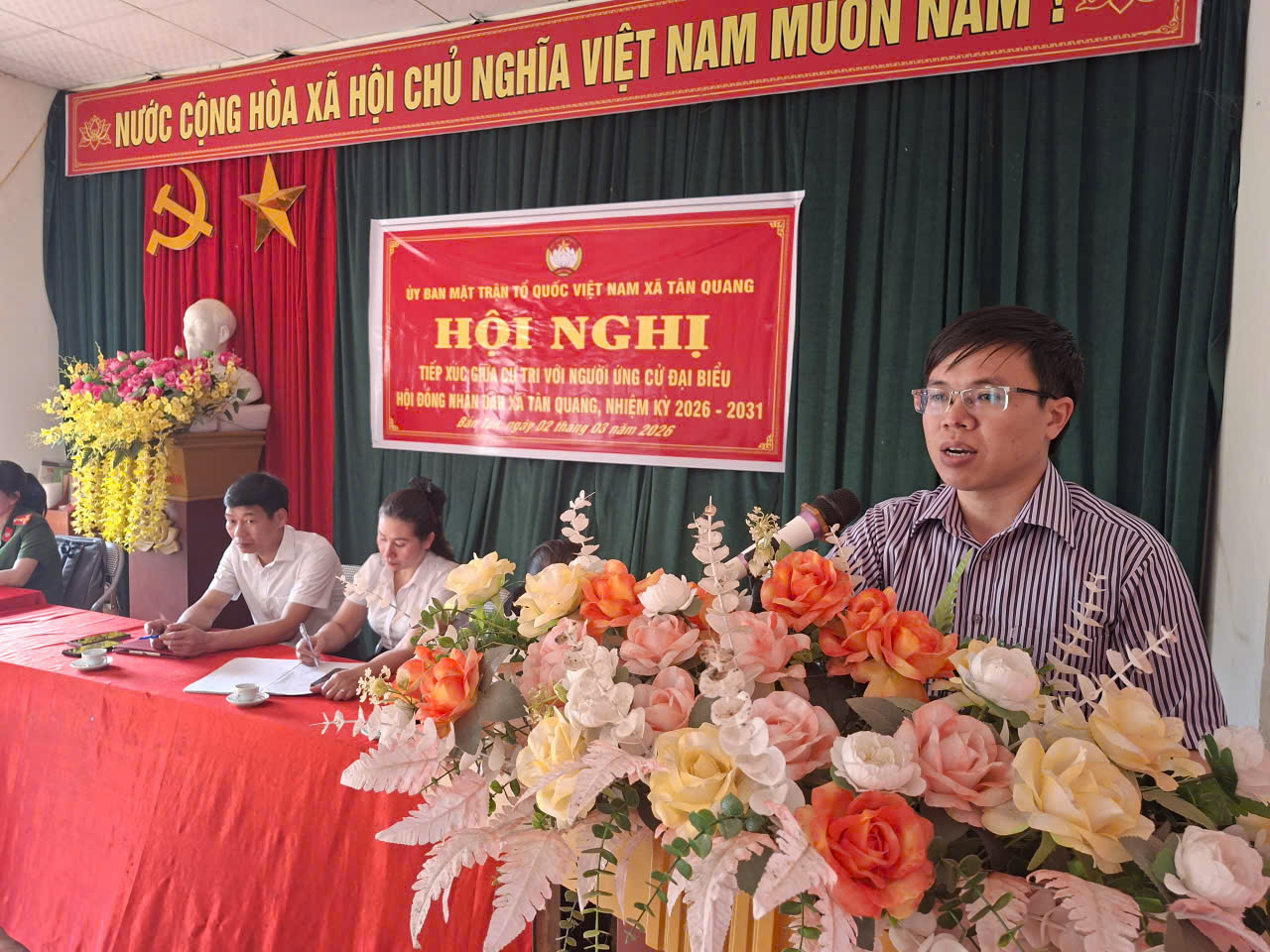 Tại Hội nghị các thôn, đoàn đại biểu ứng cử tại các đơn vị bầu cử đã trình bày với cử tri về chương trình hành động, cam kết chương trình hành động, cam kết trách nhiệm trước cử tri theo lĩnh vực, vị trí, chức năng, nhiệm vụ được phân công công tác của từng đại biểu tham gia ứng cử đại biểu HĐND xã, nhiệm kỳ 2026 - 2031