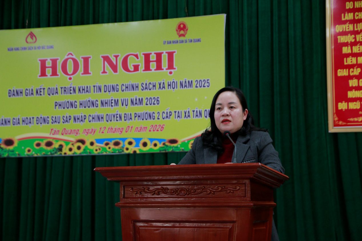 Sau sáp nhập, địa bàn xã Tân Quang duy trì hoạt động tại 03 điểm giao dịch, bao gồm: Điểm giao dịch Tân Lập; Tân Thành và điểm giao dịch xã Tân Quang. Tổng dư nợ 15 chương trình tín dụng đến hết năm 2025 đạt 82 tỷ 809 triệu đồng, với 1.961 khách hàng vay vốn, tăng so với cùng kỳ 12 tỷ 371triệu đồng. Nguồn vốn tín dụng chính sách đã được triển khai đến 100% thôn bản; kịp thời đáp ứng nhu cầu vay vốn của hộ nghèo và các đối tượng chính sách khác để đầu tư phát triển sản xuất, tạo việc làm, cải thiện đời sống.