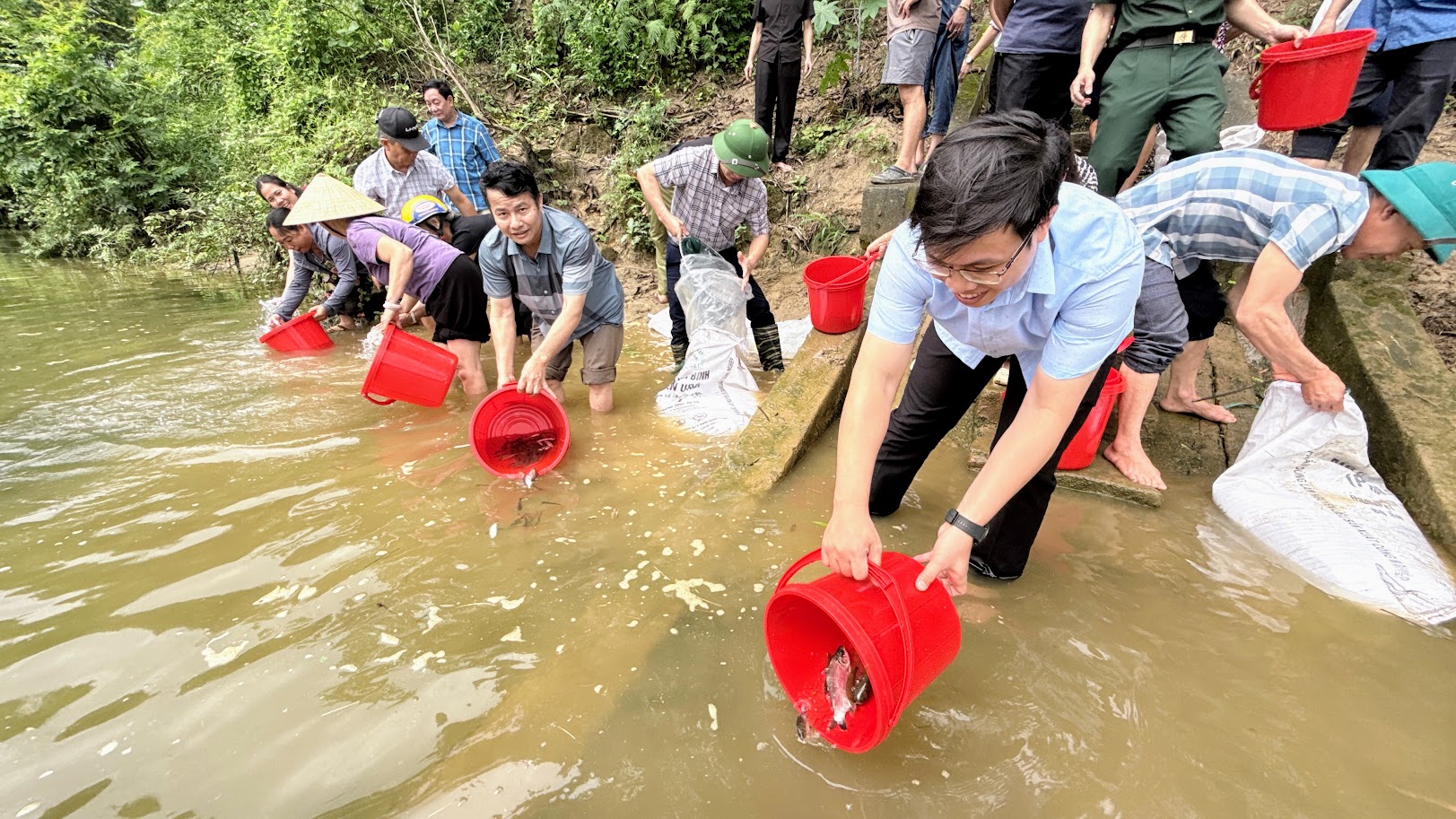 Tại buổi lễ, UBND xã Tân Quang đã tổ chức thả xuống Sông Lô 50 kg cá giống bản địa như Trắm, Chép, Mè có giá trị kinh tế cao, thích nghi tốt với môi trường tự nhiên