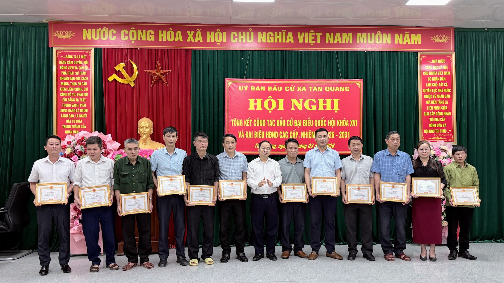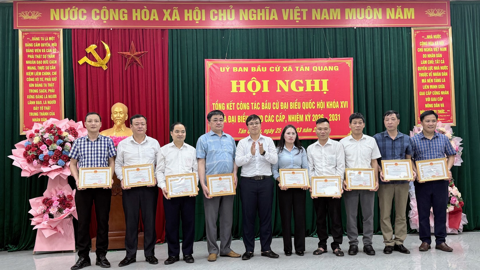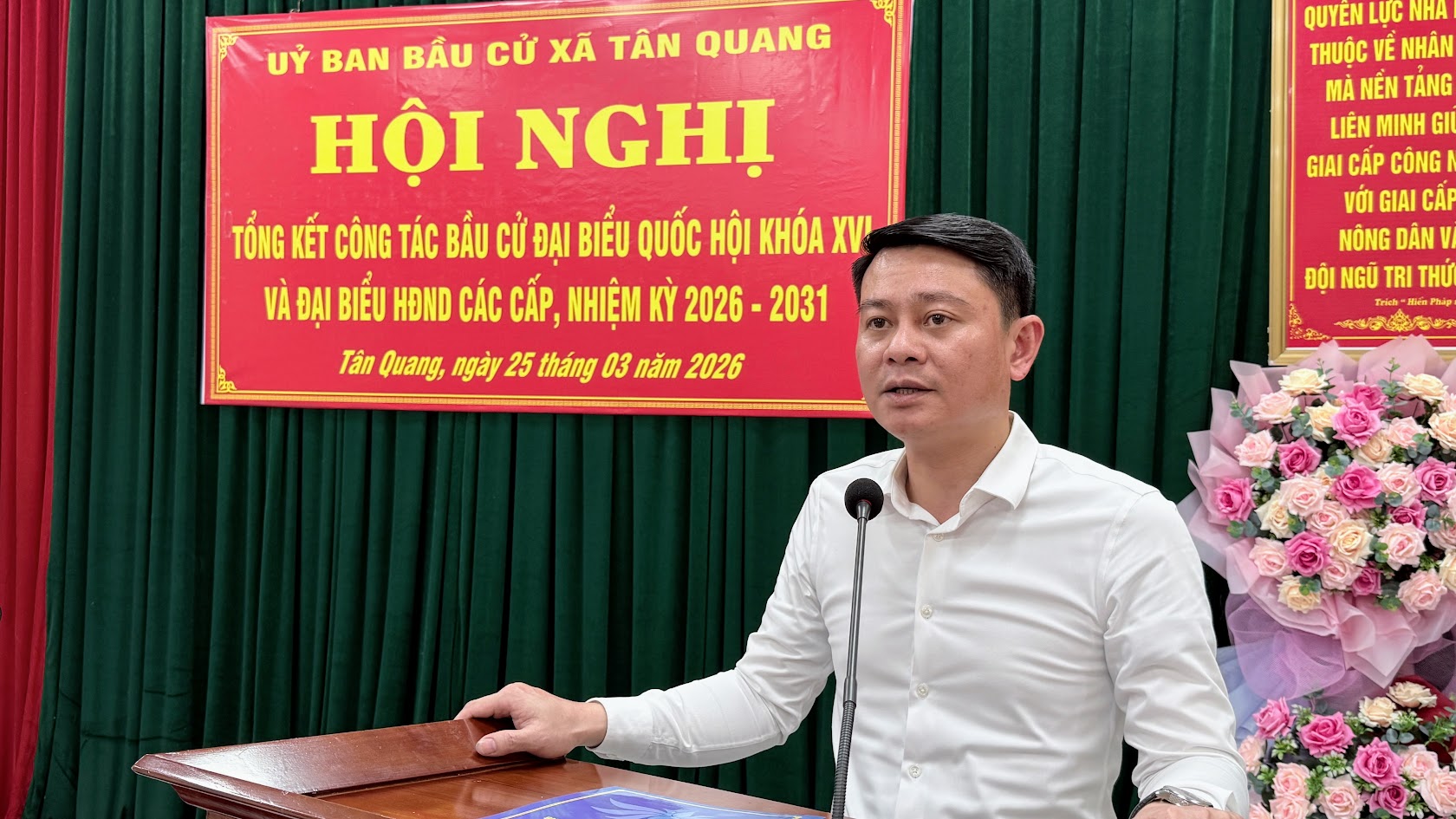 Cuộc bầu cử đại biểu Quốc hội khóa XVI và đại biểu Hội đồng nhân dân các cấp nhiệm kỳ 2026–2031 trên địa bàn xã Tân Quang đã khép lại trong không khí phấn khởi, dân chủ, an toàn và đúng pháp luật, để lại dấu ấn rõ nét về tinh thần trách nhiệm, sự đồng thuận xã hội và quyết tâm chính trị của cả hệ thống chính trị từ xã đến cơ sở. Thành công của cuộc bầu cử không chỉ thể hiện ở kết quả bầu đủ số lượng đại biểu theo quy định mà còn khẳng định hiệu quả công tác lãnh đạo, chỉ đạo chặt chẽ, chủ động, bài bản ngay từ những bước chuẩn bị đầu tiên.