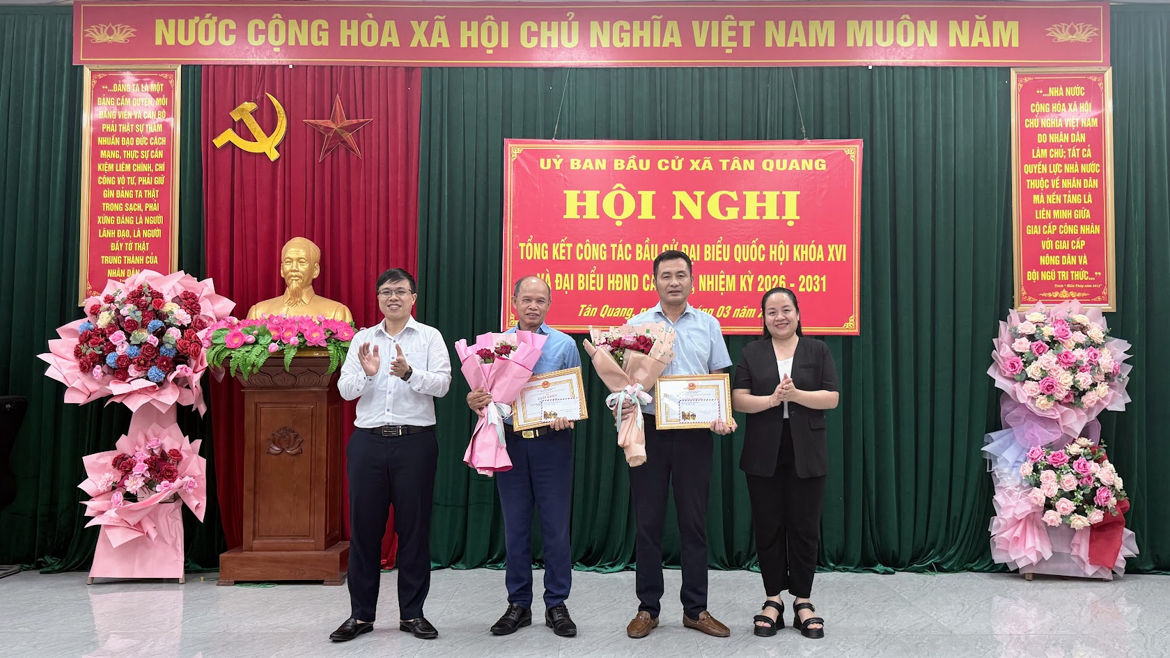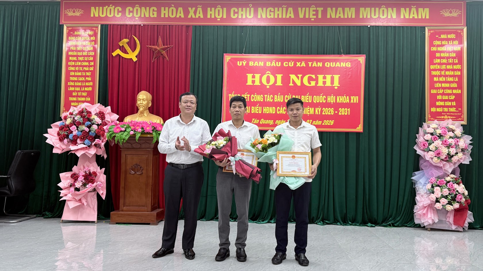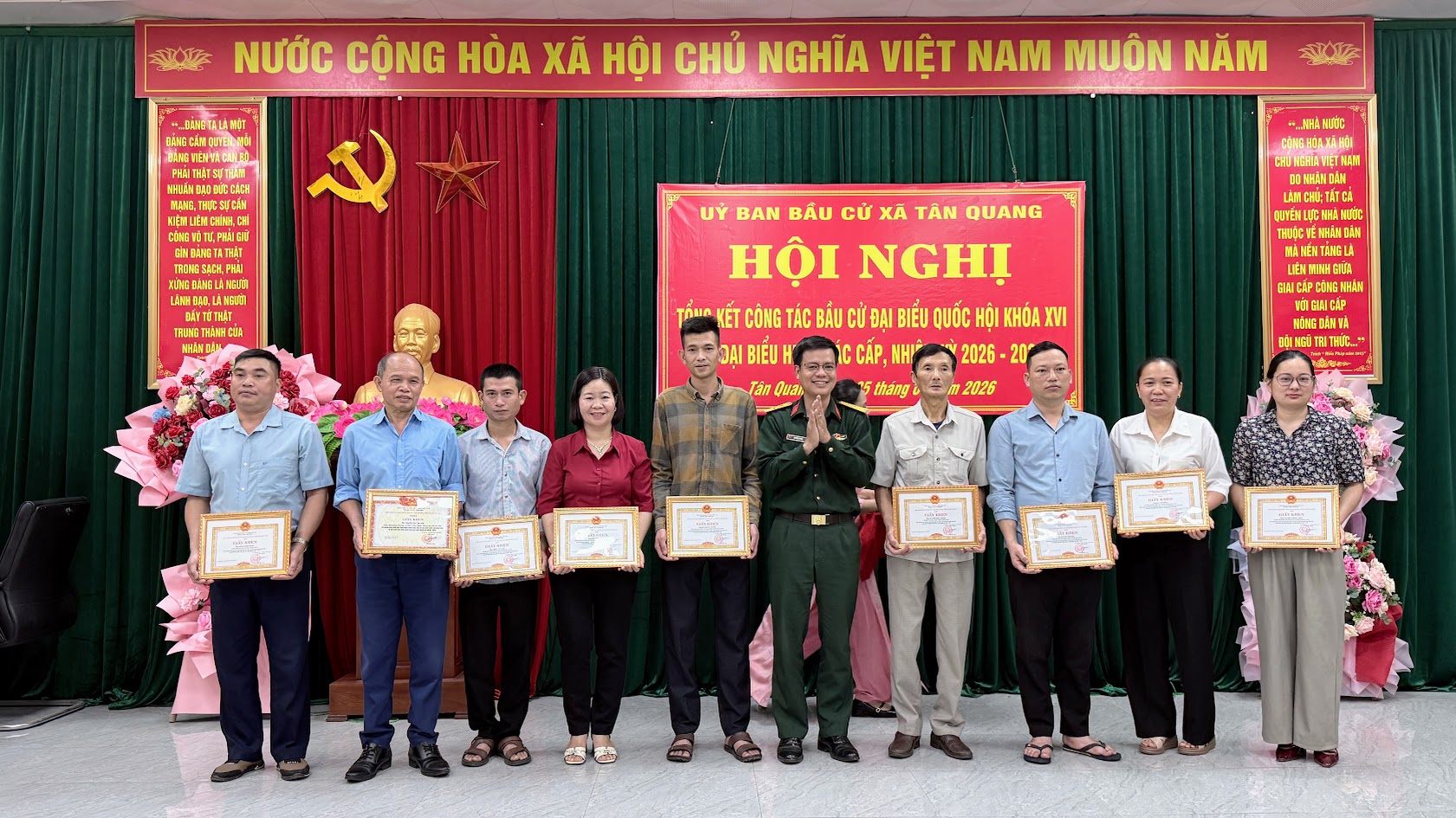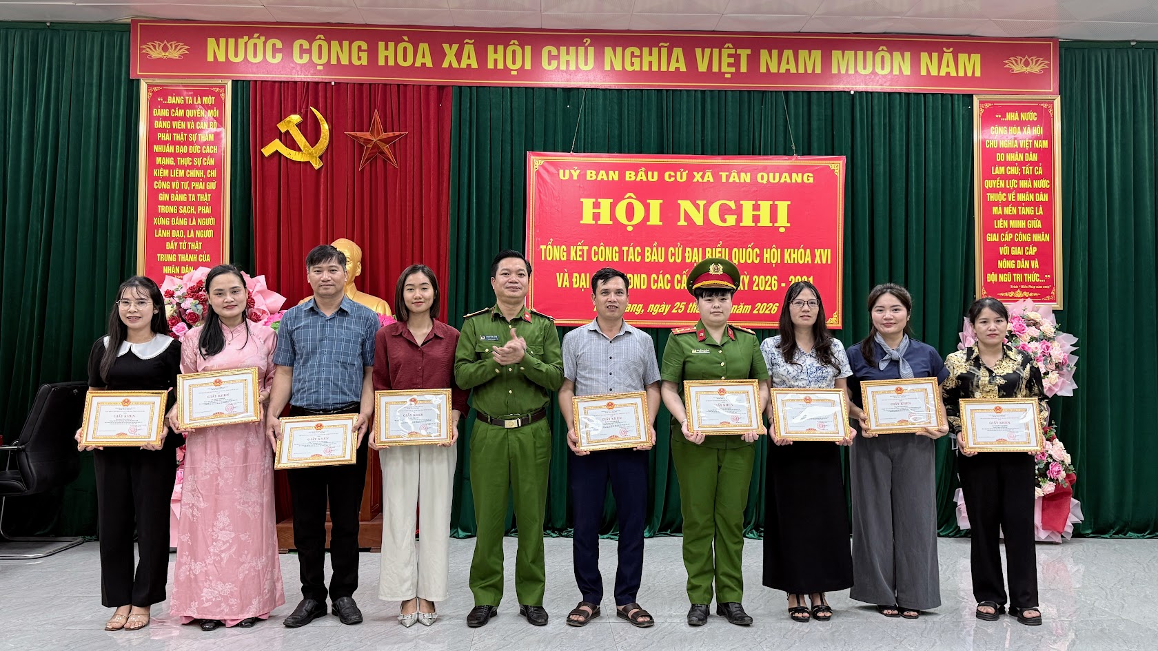 Cuộc bầu cử đại biểu Quốc hội khóa XVI và đại biểu Hội đồng nhân dân các cấp nhiệm kỳ 2026–2031 trên địa bàn xã Tân Quang đã khép lại trong không khí phấn khởi, dân chủ, an toàn và đúng pháp luật, để lại dấu ấn rõ nét về tinh thần trách nhiệm, sự đồng thuận xã hội và quyết tâm chính trị của cả hệ thống chính trị từ xã đến cơ sở. Thành công của cuộc bầu cử không chỉ thể hiện ở kết quả bầu đủ số lượng đại biểu theo quy định mà còn khẳng định hiệu quả công tác lãnh đạo, chỉ đạo chặt chẽ, chủ động, bài bản ngay từ những bước chuẩn bị đầu tiên.