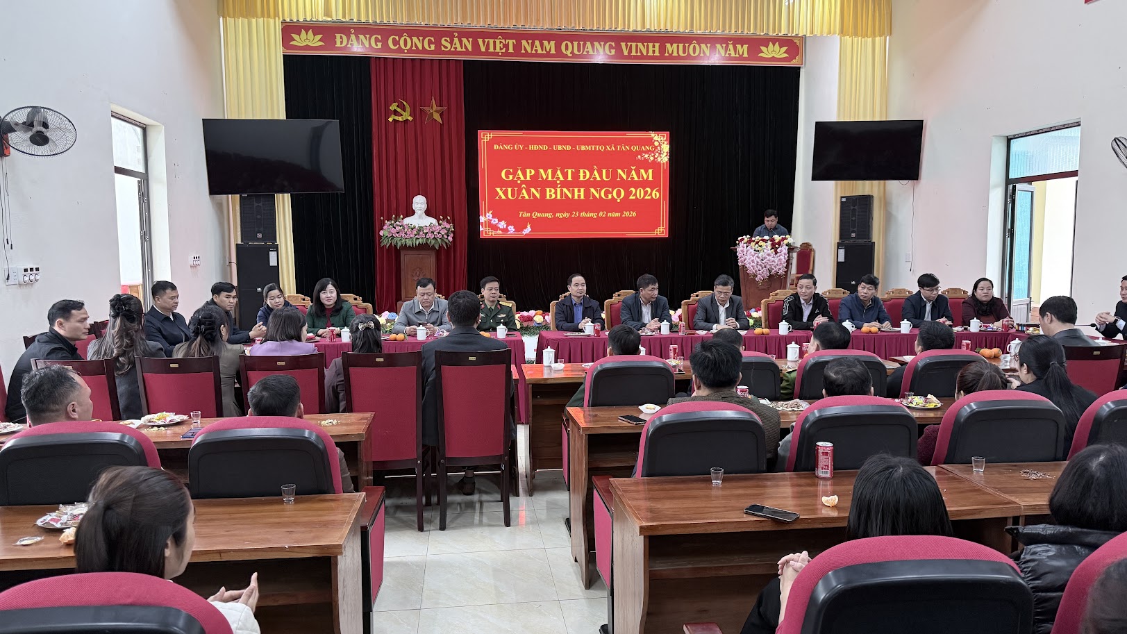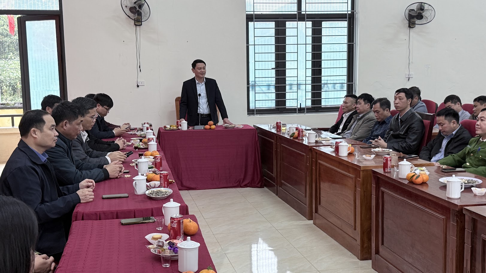 Thay mặt các đồng chí lãnh đạo Thường trực Đảng ủy, HĐND, UBND, UBMTTQ xã, đồng chí Nguyễn Trung Nguyên, Bí thư Đảng ủy – Chủ tịch HĐND xã đã thông tin một số hoạt động nổi bật trong dịp Tết Nguyên đán diễn ra tại các địa phương trong tỉnh và địa bàn xã, đây là Tết cổ truyền đầu tiên khi cả nước triển khai thực hiện mô hình chính quyền địa phương 2 cấp. Theo đó, đồng chí Bí thư Đảng ủy mong muốn sau những ngày đón Tết cổ truyền vui tươi, lành mạnh và tiết kiệm, nhiệm vụ trước mắt của mỗi cán bộ, đảng viên, công chức, viên chức trong toàn xã hãy nêu cao tinh thần đoàn kết, đồng lòng, tiếp tục ra sức thi đua hoàn thành tốt các chỉ tiêu, nhiệm vụ mà Nghị quyết Đại hội Đảng bộ các cấp đã đề ra; trọng tâm triển khai đồng bộ, hiệu quả và chất lượng cuộc Bầu cử đại biểu Quốc hội và bầu cử đại biểu HĐND các cấp trên địa bàn xã.
