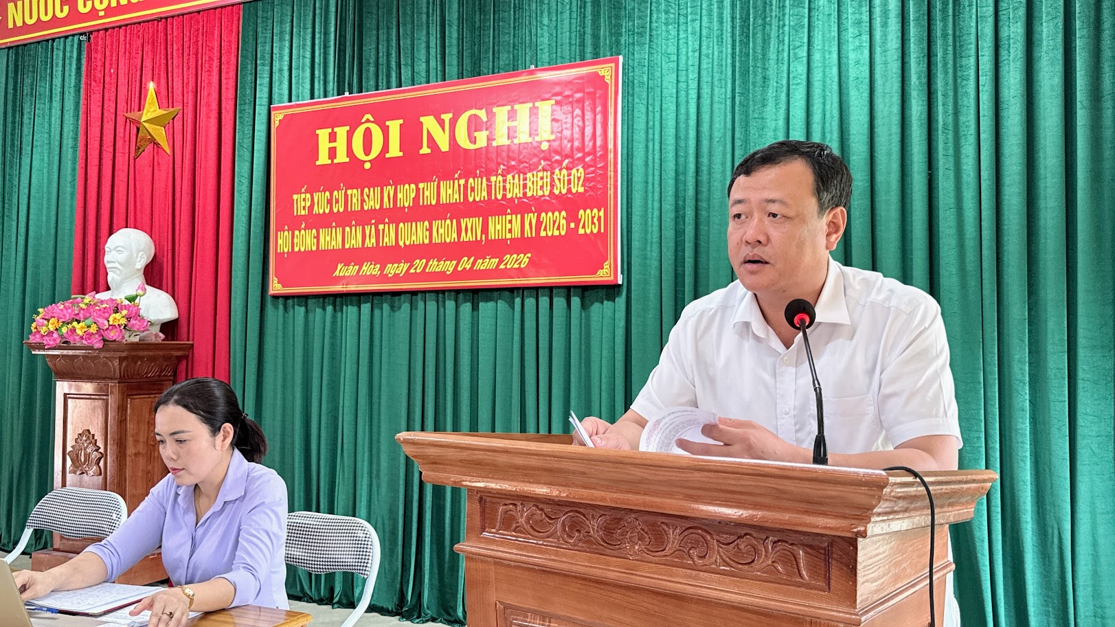 Tại các buổi tiếp xúc, các ông bà đại biểu HĐND xã đã thông báo với cử tri về kết quả bầu cử đại biểu Quốc hội khóa XVI và đại biểu HĐND các cấp, nhiệm kỳ 2026 - 2031; kết quả kỳ họp thứ nhất HĐND xã Tân Quang khóa XXIV, nhiệm kỳ 2026 - 2031. Thông tin đến cử tri về tình hình phát triển kinh tế - xã hội, quốc phòng, an ninh quý I năm 2026 của xã; các nhiệm vụ, giải pháp trọng tâm trong thời gian tới