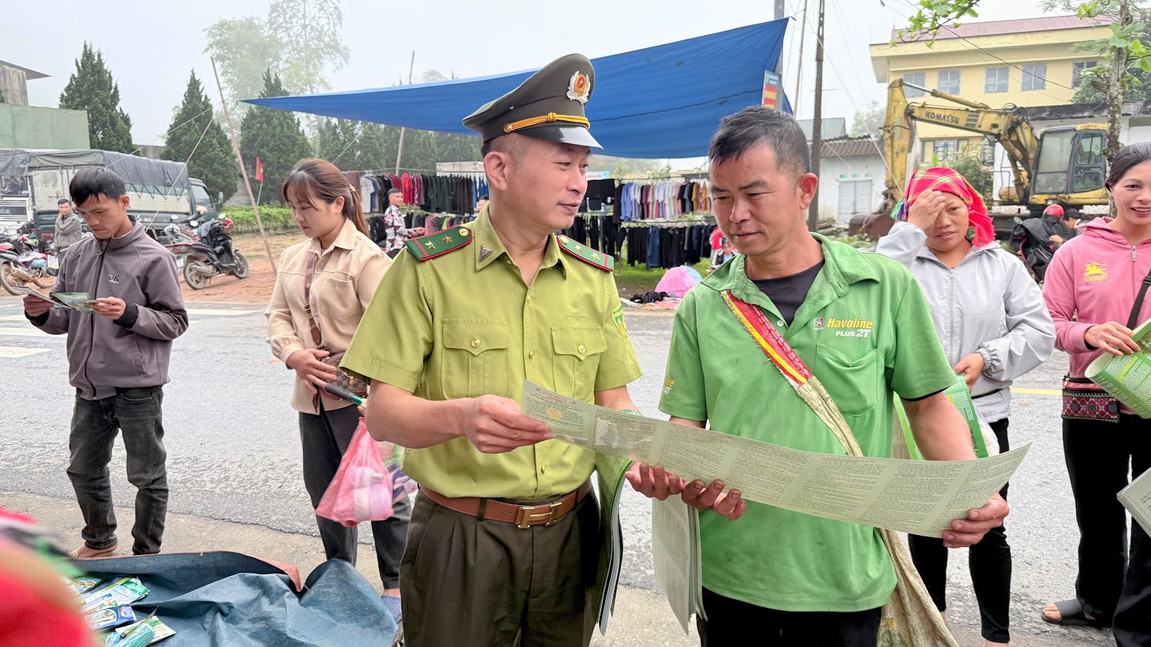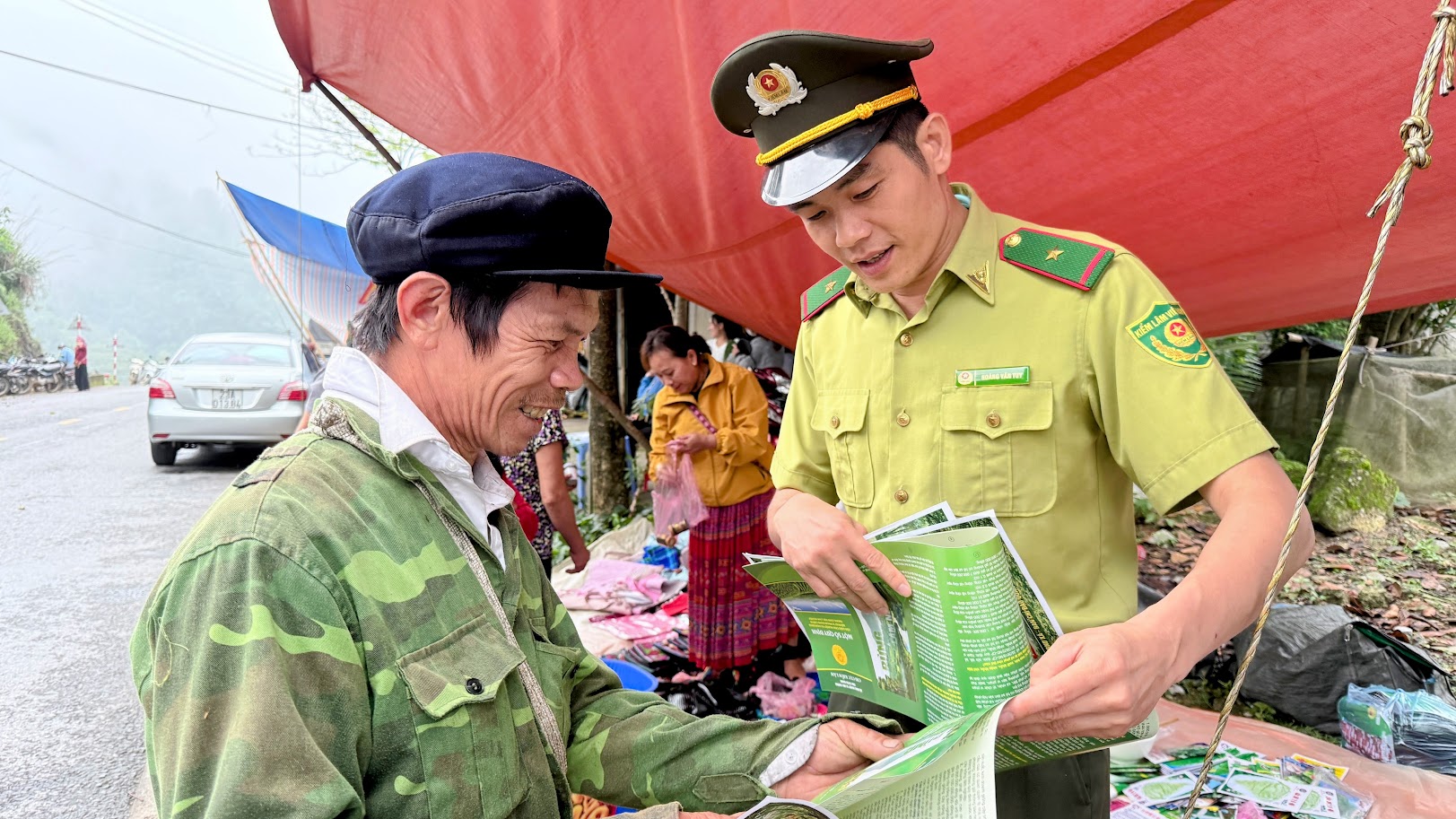 Ngày 2/4/2026, tại điểm chợ phiên Tân Lập, Tổ Kiểm lâm phụ trách địa bàn xã Tân Quang, thuộc Hạt Kiểm lâm khu vực VII phối hợp với UBMTTQ, các tổ chức đoàn thể, lực lượng công an, BCH Quân sự xã tổ chức phát tờ rơi tuyên truyền Luật Lâm nghiệp và các văn bản của Trung ương, tỉnh về công tác quản lý, bảo vệ rừng, phòng cháy, chữa cháy rừng đến với người dân